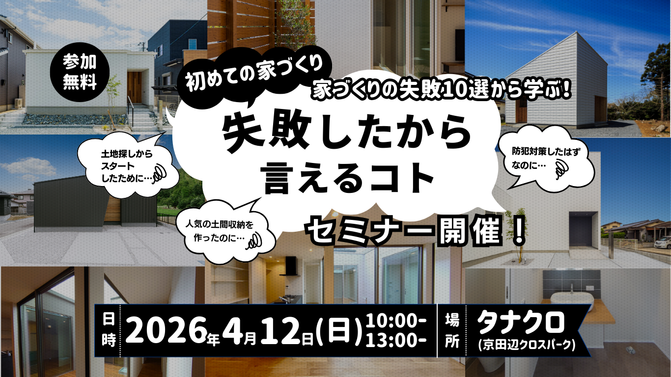 皆さんが同じ後悔をしないための家づくりセミナーを開催します。